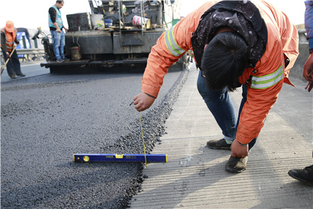 12月6日下午,在永寧江大橋的養護搶修攤鋪現場,多臺機械互相配合,將滾燙的瀝青鋪設在已經刨銑干凈的路面上,施工人員三五個一組正在協助機械對路面進行最后的處理,監理人員不時的用水平尺等工具測量路面平整度,同樣的場景在多段面施工現場同時展開。