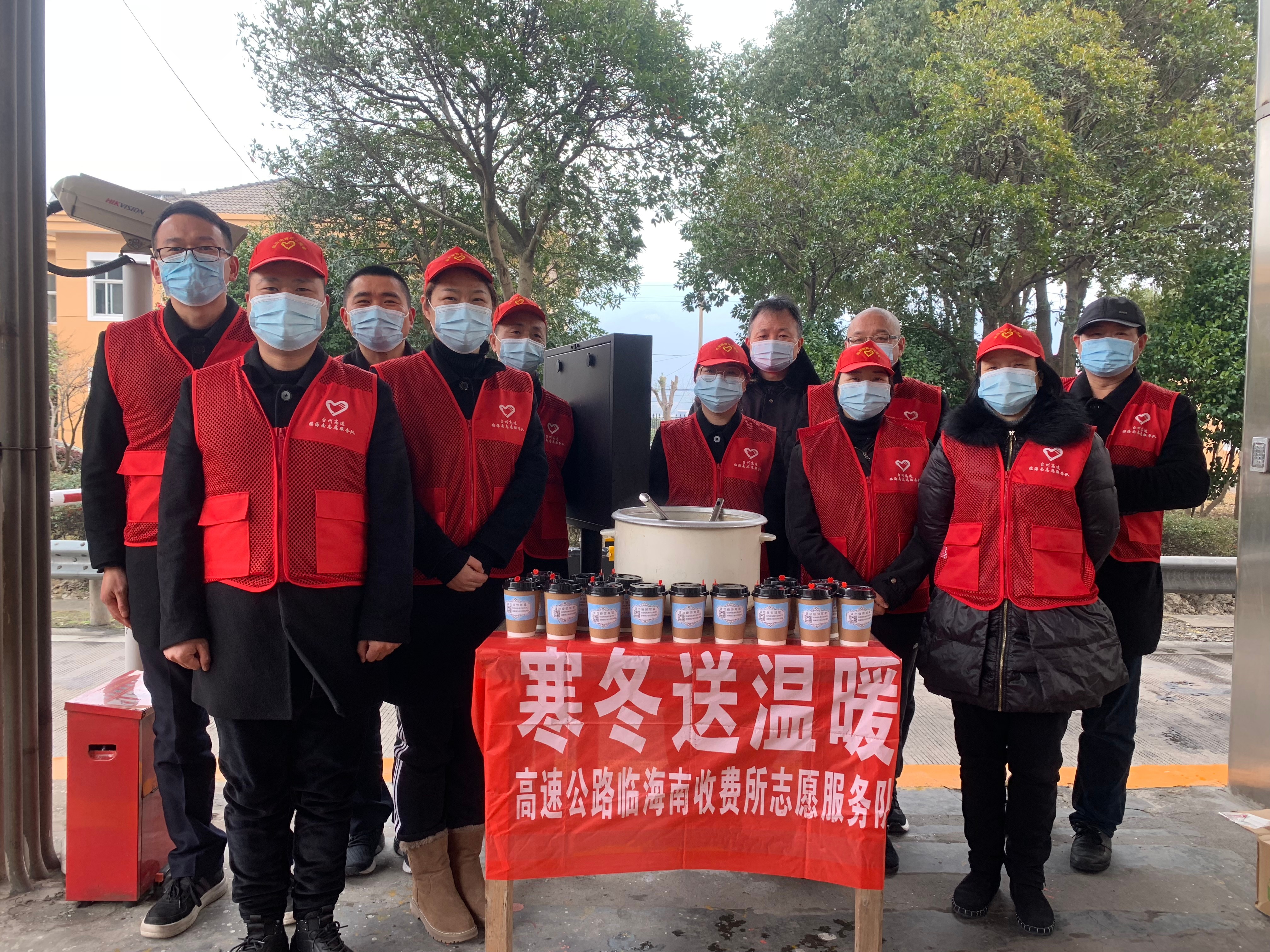 1月7日中午,臨海南收費(fèi)所開展寒冬送溫暖志愿服務(wù)活動,為過往駕駛員捧上了一杯杯溫?zé)岬募t糖紅棗姜茶,為他們送去了寒冬里的一縷溫暖。