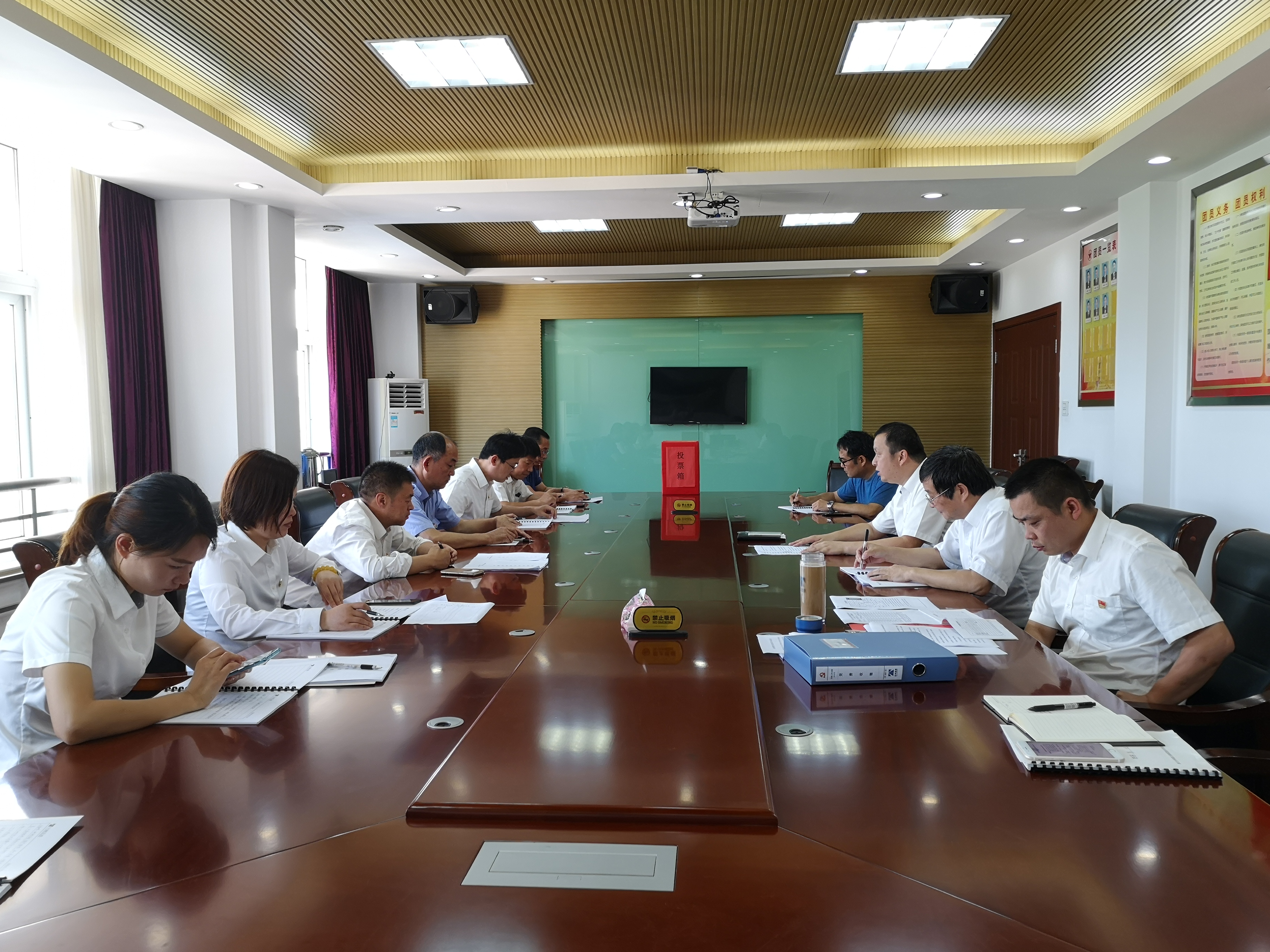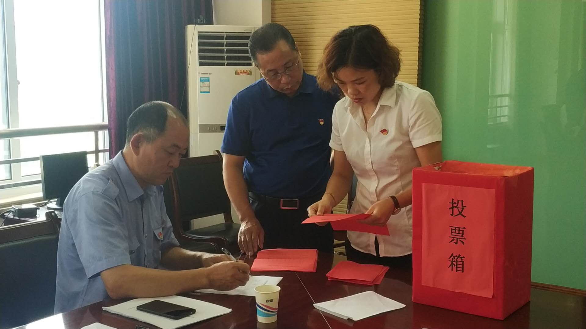 臺州收費所黨支部召開黨員大會進行換屆選舉 6月4日上午,臺州收費所黨支部組織召開黨員大會,舉行支部換屆選舉工作,全體黨員參加此次會議。 本次選舉遵循規定程序,以無記名差額投票方式選舉產生新一屆支部委員,選舉王小勇為黨支部書記,何先林為組織委員兼紀律委員,朱歷煜任宣傳委員。