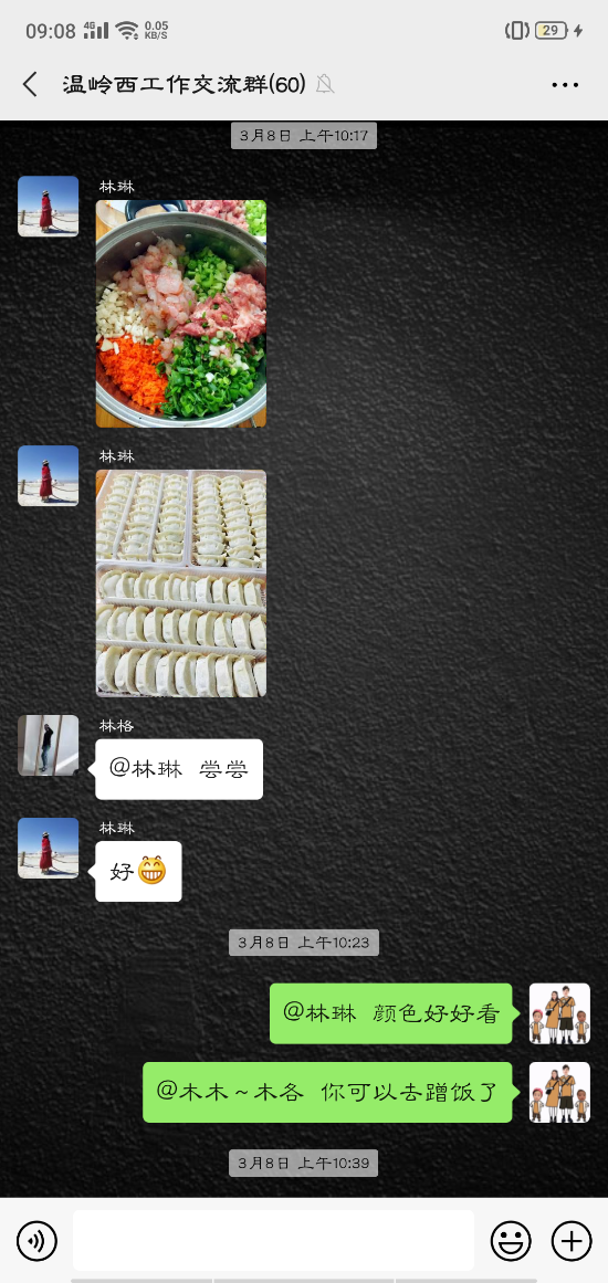 活動中,大家的參與性都很高,紛紛在微信群內曬出自己制作的美食:鹽焗雞可樂雞翅、蔥油角角魚、溫嶺小吃豬肉飯、玫瑰南瓜饅頭……紛紛亮出了自己的拿手好菜在群里談論得熱火朝天的同時,也不忘介紹一下自己做的菜甚至很多男同事也紛紛曬出自己的最佳廚藝,祝福女同胞節日快樂