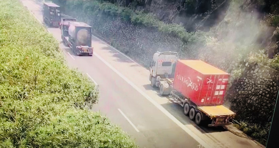 快速出警 將“火”扼殺在萌芽狀態(tài) 7月17日,連日的陰雨總算放晴,中控員如常盯著監(jiān)控大屏,13:18分,黃土嶺隧道溫向北洞口停車(chē)帶一輛紅色半掛車(chē)極其耀眼,憑借多年的崗位經(jīng)驗(yàn),中控員第一時(shí)間切換到主畫(huà)面,嚴(yán)密監(jiān)視車(chē)輛動(dòng)態(tài)。 “不好,車(chē)輛‘著火’了!”短短幾秒鐘的時(shí)間,此車(chē)右側(cè)后方逐漸升起煙霧,越來(lái)越濃密。中控員立即通知監(jiān)控中心與執(zhí)勤隊(duì),啟動(dòng)應(yīng)急預(yù)案。