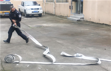 此次訓(xùn)練以計時比賽的形式進行,執(zhí)勤隊員分組展開模擬演練,每組兩次機會,取平均分記入考核。參練人員個個激情高漲,積極投入,演習(xí)場面熱鬧非凡。每組隊員在第一輪比賽后都抓緊互相探討動作要領(lǐng)和水帶掐口的連接方法等,確保第二局能夠更準確、更迅速地完成連接。