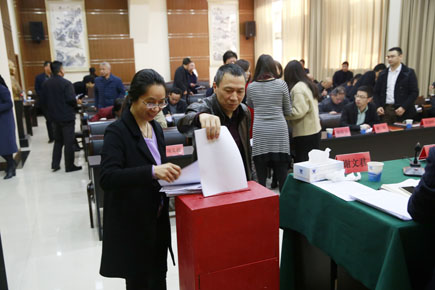 圖為公司董事長(zhǎng)謝文君在會(huì)上匯報(bào)2016年度工作