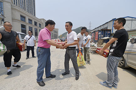 圖為公司副董事長(zhǎng)、總經(jīng)理張建平給內(nèi)環(huán)路一線人員送上消暑慰問(wèn)品