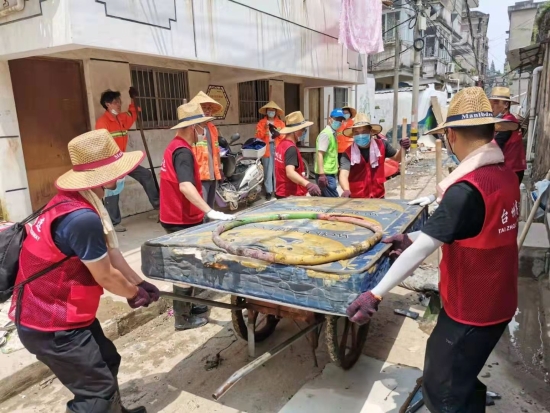 圖為臺州高速志愿者支援災(zāi)區(qū)重建現(xiàn)場 在臨海古城赤城路米篩巷,臺州高速集團的志愿者們頂著毒辣的太陽,不怕臟不怕累,積極為災(zāi)后重建貢獻力量,清理路面淤泥、垃圾,保障路面清潔以及道路順暢。 真情傳遞溫暖 愛心匯聚力量, 面對災(zāi)后重建, 臺州高速集團用實際行動, 彰顯鐵軍精神, 承擔(dān)社會責(zé)任, 展現(xiàn)使命擔(dān)當(dāng)。