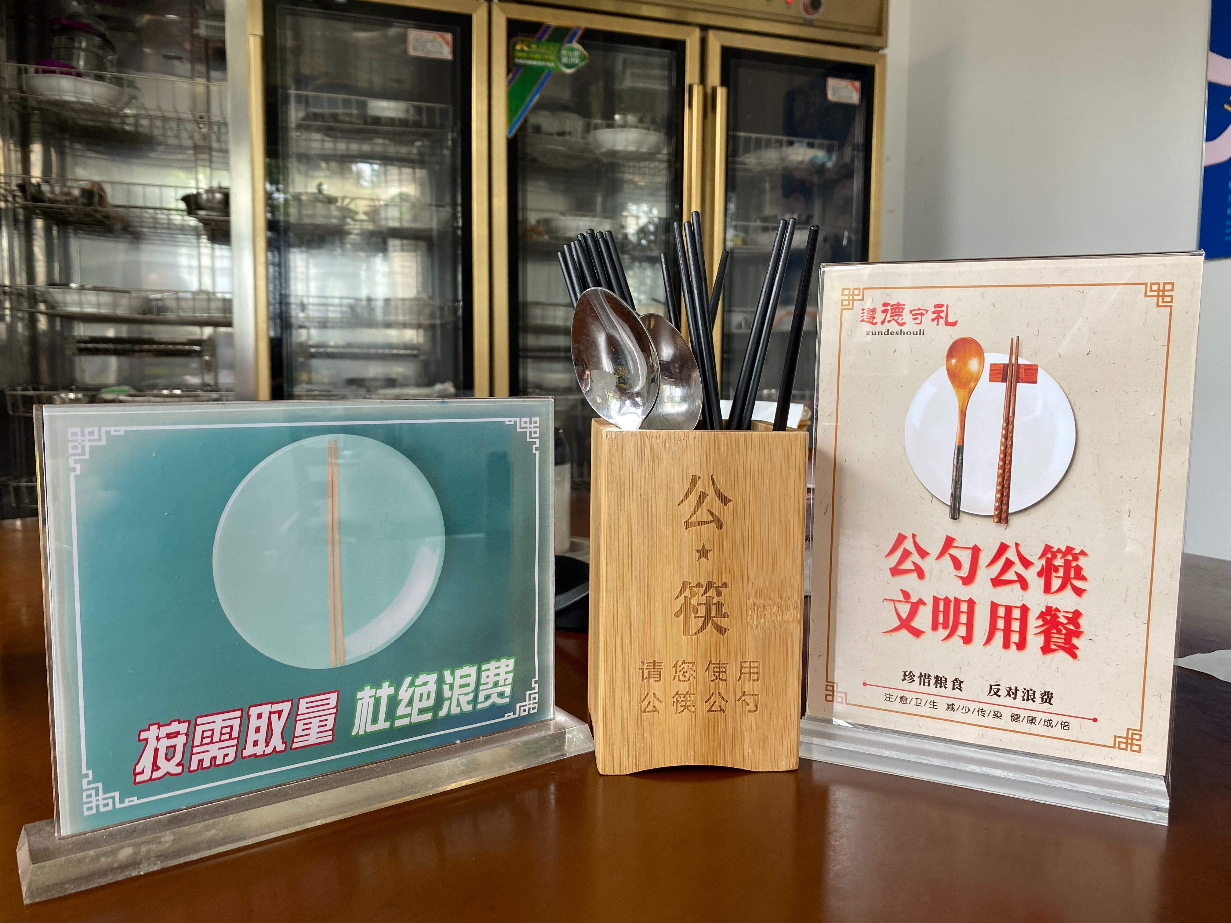 該所通過食堂粘貼宣傳畫、餐桌放置宣傳標(biāo)牌、設(shè)置公用筷子筒等多種方式進(jìn)行廣泛宣傳,以此提升“反對浪費、公筷公勺、文明健康”的活動知曉率,促進(jìn)全體員工積極參與,引導(dǎo)員工自覺杜絕“舌尖上的浪費”。