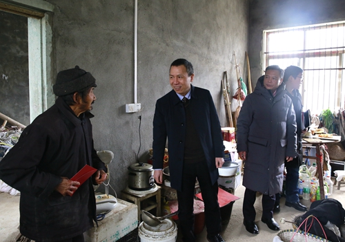 在塘上村,張建平走進80多歲老人鮑于朝簡陋的家中,緊緊握住老人的雙手噓寒問暖,親切詢問身體狀況,家庭生活等情況,囑咐老人保重身體。