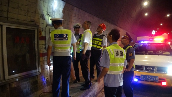 圖為檢查組在黃土嶺隧道檢查 現場,檢查人員分組對隧道內的汽通門遠程控制系統、排煙系統、消防設備、火災報警系統、消防報警電話、疏散逃生指示標志等設施的位置、數量、配備及現場使用完好率進行了全面細致的檢查,并記錄存在的問題,討論改進方法。