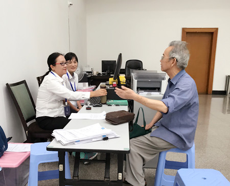 圖為70多歲的股東辦理股權轉讓現場