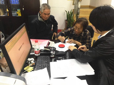 圖為椒江收購點現場 不巧的是,剛好收購點的股東特別多,輪到老兩口辦理得等待些時間,正好他們可以坐著仔細看看收購點的各類宣傳資料,等待中友好而耐心。 當問及王阿姨是哪年購買臺州高速股權的,她邊說邊小心地拿出一張一張發黃的原始資料,“可早啦,94年買的呢,估計你那時都還沒上學呢。”原來她是替臺州市椒江星明實業總公司辦理法人股轉讓的。作為工作多年的財務人員,她對待每個辦理環節都甚是仔細。架著一副老花眼鏡的她,坐在工作人員的身旁,耐心地問清轉讓疑問,逐字地看著股權轉讓協議書,認真地填好股權轉讓款單,不管是簽字還是蓋章都不慌不忙。 “年輕人,你們可也得把資料看看仔細,如果出差錯讓我再來,那可得你們準備好出場費請我來哦。”王阿姨開著玩笑對工作人員說道。 陳林偉