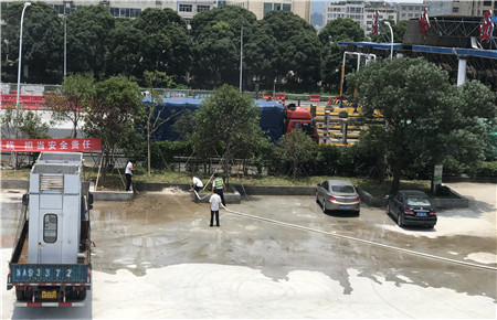 由于平時都忙于工作,水泥地澆好之后,一直空著,無人管理,地上滿是泥土和落葉。為了讓這塊水泥地盡快地投入使用,所班子帶著員工們一起,沖洗這塊水泥地。烈日炎炎,大家的頭頂上都冒出了密密的汗珠,汗水順著衣背直流下來,一些怕熱的同事們衣服早就濕透了。一些路過的同事看到這場面都紛紛前來幫忙。可是沒有人說一聲累一聲苦,個人都精神飽滿,干勁十足。漸漸的,只見原本充滿泥土和落葉的水泥地變得干凈了起來,在大伙的共同努力下,辛勤的勞動也終于是有了豐收的成果。 看著這干凈的水泥地,每個人的臉上都露出了滿意和欣慰的笑容。這是大家一起勞動的成果,讓我們?yōu)檫@樣的團(tuán)結(jié)和集體精神點(diǎn)個贊。 鄭霞霞