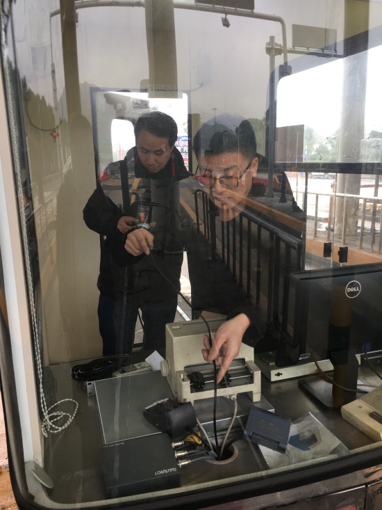 圖為工作人員在安裝手持OBU讀寫器 在得知這一情況后,工程部機電設(shè)備維養(yǎng)中心一開始想到了通過加大天線功率的方法來提高OBU讀寫成功率,不但收效甚微還造成了鄰道干擾,并將同信道的相鄰車道車輛OBU信息也一同讀取了,造成了數(shù)據(jù)混亂,增加了收費人員的工作量。 正在一籌莫展之際,中心負責(zé)人通過全省收費系統(tǒng)互助群了解到省內(nèi)部分路段針對這一狀況啟用了手持式OBU讀寫器,在反響不錯后,中心人員立刻聯(lián)系了設(shè)備廠家訂購郵寄。 經(jīng)過維護人員一天的安裝調(diào)試,手持式OBU讀寫器已成功接入到每個車道崗?fù)ぁ_@種新型手持讀寫器具有DSRC專用短程通信接口,可以識別車輛上OBU設(shè)備內(nèi)特有的編碼,判別車型,寫入信息,計算通行費用,并自動從車輛用戶的專用帳戶中扣除通行費。當(dāng)現(xiàn)有車道天線交易失敗時,收費人員便可用它對車輛OBU進行重新搜索并自動進行交易。 手持式OBU讀寫器的投入使用,彌補了現(xiàn)有車道OBU讀寫器的缺陷與不足,有效減少車輛擁堵現(xiàn)象的發(fā)生,便于收費人員現(xiàn)場靈活操作,提高收費站的通行效率。 項寅曉