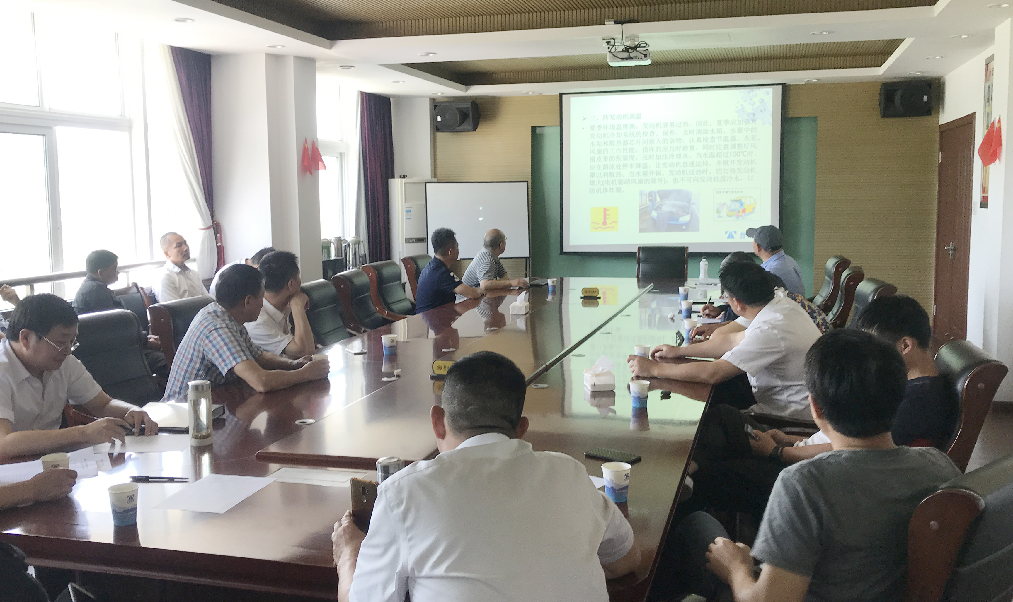 會議組織學習夏季安全行車知識,通過講述夏季安全行車及注意事項、夏季高溫作業的預防措施、夏日用車節油竅門技巧、夏天駕車6個危險習慣等要點,讓大家注意防暑降溫、防雨、防火防爆,要克服麻痹松懈思想和厭倦情緒,努力做好夏季安全生產工作,克服季節性不利因素的影響,有效控制各類事故發生。