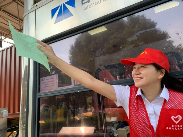 9月10日上午,臨海南收費所志愿者身穿耀眼的紅馬甲,在車道出入口向過往司乘人員發放“弘揚傳統美德,制止餐飲浪費”倡議書,號召廣大司機從自己做起、從現在做起、從點滴做起,自覺抵制餐飲浪費,積極號召身邊的人傳承勤儉節約的良好家風,向全社會營造“浪費可恥、節約為榮”的深厚氛圍。