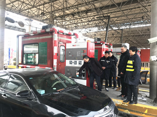 圖為公司總經理張建平給過往司乘人員發卡