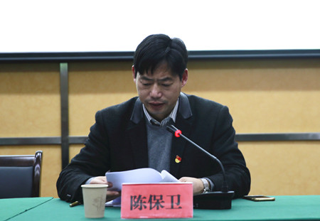 圖為集團(tuán)黨委委員、副總經(jīng)理陳保衛(wèi)傳達(dá)文件精神