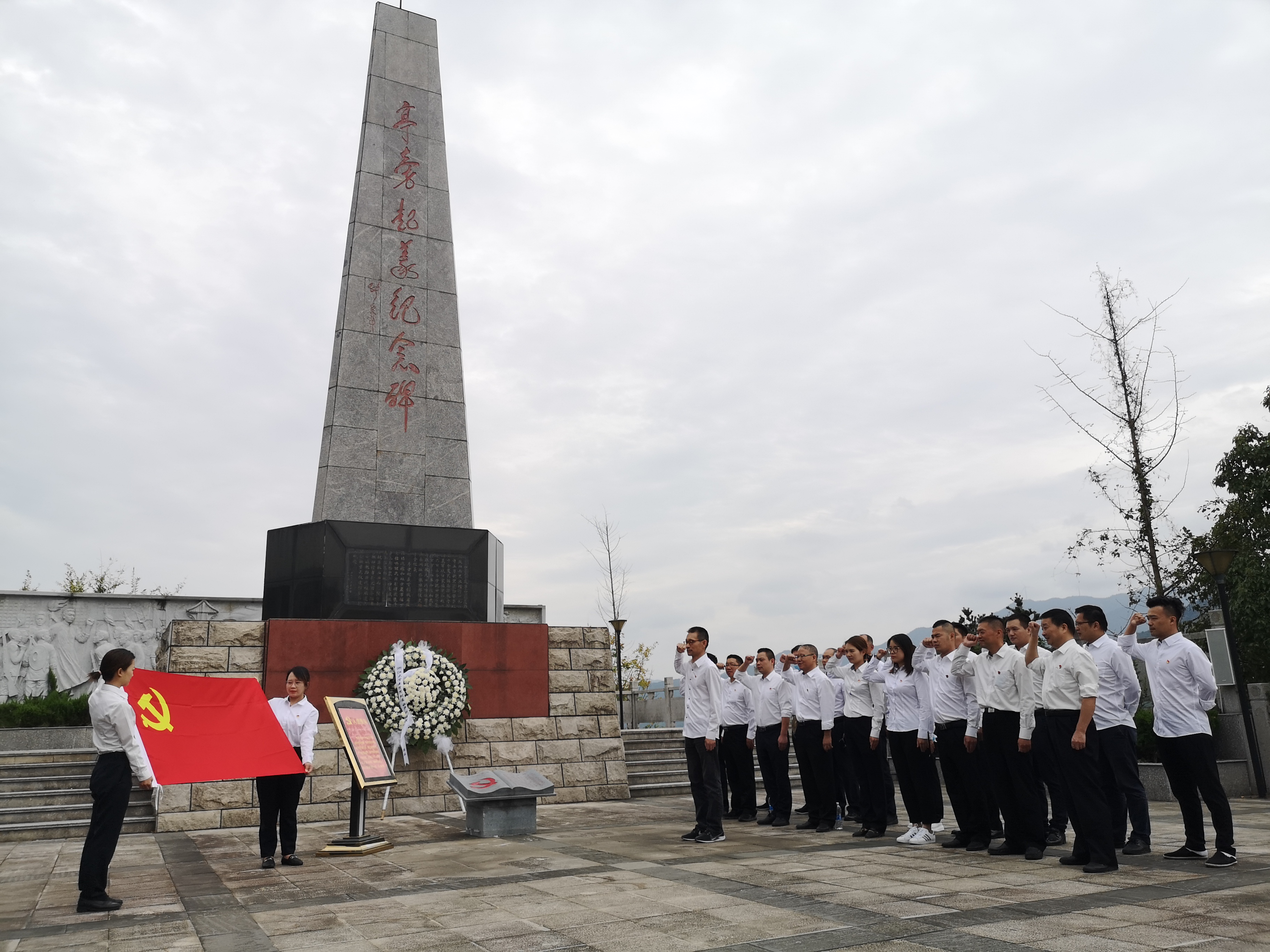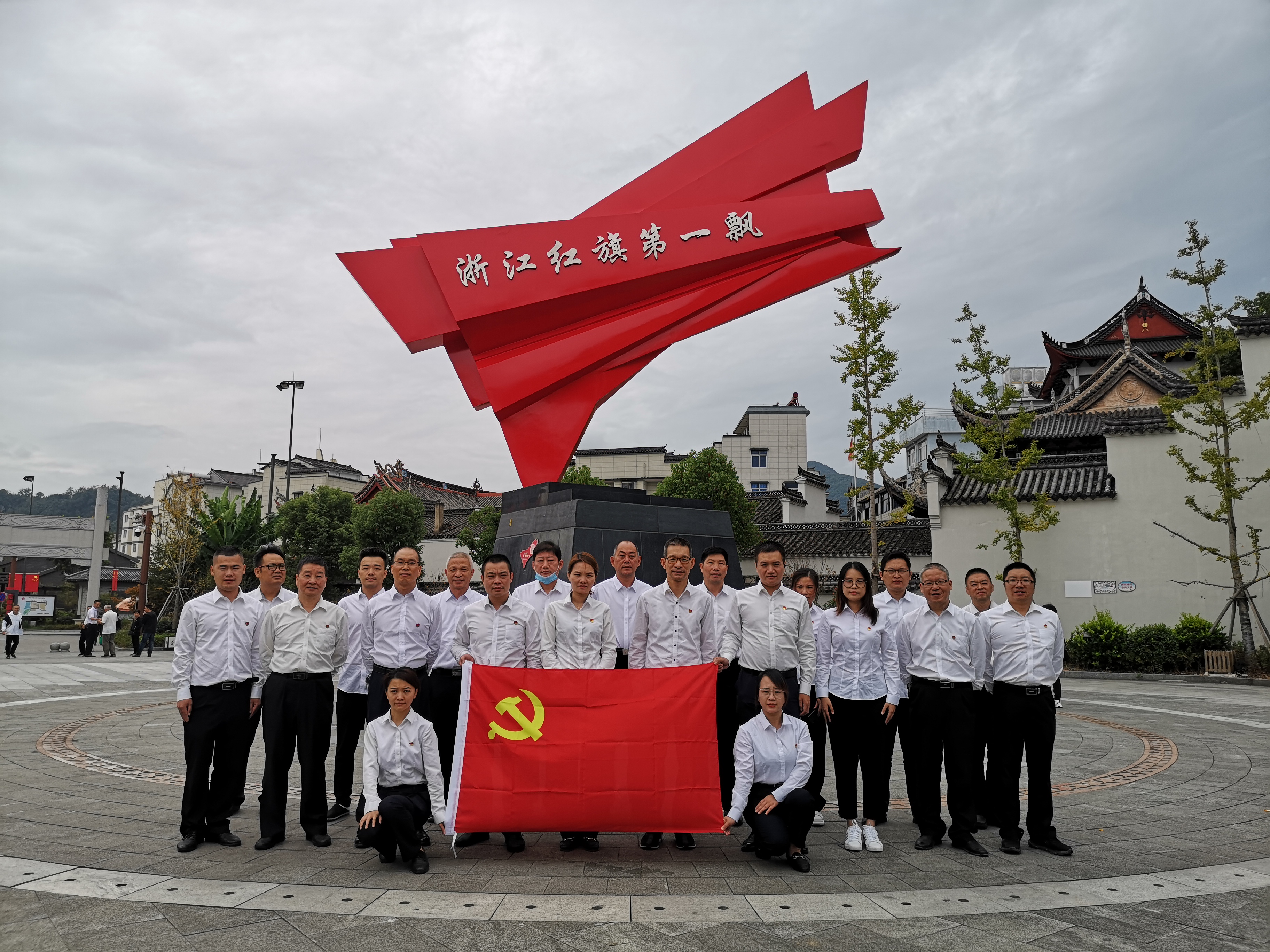 (圖為紀(jì)念碑黨員合影) 亭旁起義打響了浙東武裝奪取政權(quán)的第一槍,建立了浙江第一個(gè)蘇維埃政權(quán),被譽(yù)為“浙江紅旗第一飄”。 黨員同志們沿著先烈們的足跡,接受著紅色精神的洗禮。在亭旁起義紀(jì)念碑下,同志們重溫入黨誓詞;在紀(jì)念館,聆聽亭旁起義的歷史;在城隍廟,感受紅色區(qū)域的家國情懷……黨員們紛紛表示,一定會銘記歷史、繼承傳統(tǒng)。