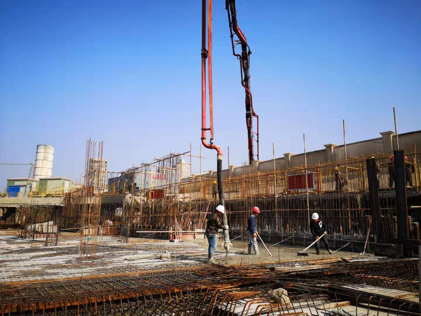 圖為施工現場 2019年是玖璽逸墅項目建設年,當前,項目已進入地下室土方開挖,局部底板開始澆筑。 該項目上半年受多雨天氣和商品混凝土供應短缺等影響,下半年又受黃巖當地無消納場等政策影響,樁基施工完成后一度處于停滯狀態。時間一點點流逝,九月份黃巖房地產協會關于解決土方消納問題的報告又石沉大海,房產公司經營班子看在眼里、急在心里。時間就是金錢,效益就是生命。房產開發涉及大體量的資金投資,每天的成本均不是小數目??s短開發周期是房產的主要效益點。 等待不是我們的風格,行動才是我們的作風。房產公司會同施工單位、土方單位多次一起想辦法,在給予施工方壓力的同時,房產公司主動直接和集聚區東達公司溝通消納問題,更是多次協調土方單位和施工單位之間的關系,各方通過土方短駁,土方跨區域外運、消納,土體分層次綜合利用,想盡一切辦法促進土方外運。土方單位和施工單位更是發揮自身優勢,克服車輛跨區域被扣、違規被查等問題,積極聯系相關部門,尋求理解與支持??偘鼏挝灰膊扇“鼤r包干的激勵政策,經過多方努力,工程施工終于一步步恢復到正常的軌道上來。 進入11月和12月,為了搶抓工程進度,明和房產公司要求施工方全力以赴,開足馬力,進行年底大沖刺,搶占工程建設新高點,為后續銷售開拓更為廣闊的空間。 目前,施工正在全班上馬,早晚搶工,全速推進,工程管理人員隨時在場監管質量與安全,項目建設節節攀升。1號、5號、9號、12號樓正在綁扎鋼筋,2號、6號和10號樓已進入底板墊層施工,計劃15日前完成中央庭院以東樓幢土方開挖,力爭春節前完成B區商品房地塊全部土方工程和基礎墊層,局部樓棟達到二層面。 包啟曉