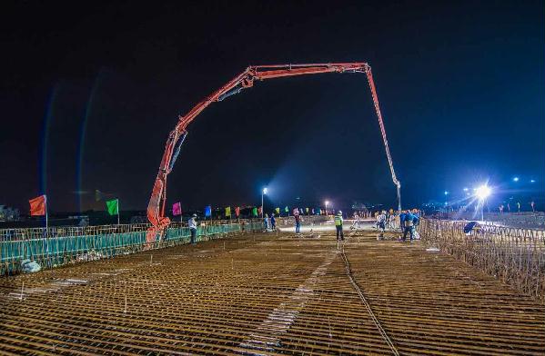 圖為4月21日凌晨,內環路8#立交第二聯箱梁頂板澆筑場景。鐘 彪攝 8#立交工程位于黃巖區紅三村和紅四村,主線橋8#立交全長1300多米,是臺州市首座全互通四層立交。東接九峰公園,西臨黃巖主城區,上跨二環東路,南北連104國道,作為內環路唯一一個位于城鄉接合部關鍵節點,復雜的施工環境,繁瑣的交通組織,給工程的正常推進帶來了嚴峻的考驗。“我們全體參建人員根據現場情況不斷優化方案,細化措施,狠抓落實,連續作戰,保證每月完成既定任務指標。”8#立交項目現場負責人金小琳表示。 目前,8#立交主線橋梁順利貫通,離11月11日主線通車的目標又邁進了一大步。據臺州高速市政建設投資有限公司副總經理何翔介紹,接下來的工作重心是在主體結構完工的基礎上抓緊匝道及附屬構筑物的施工,爭取讓臺州市民能盡早用上這條民心路。 (本文轉自《臺州日報》2017年4月22日第01版) http://paper.taizhou.com.cn/tzrb/html/2017-04/22/content_794805.htmfrom=groupmessage&isappinstalled=1